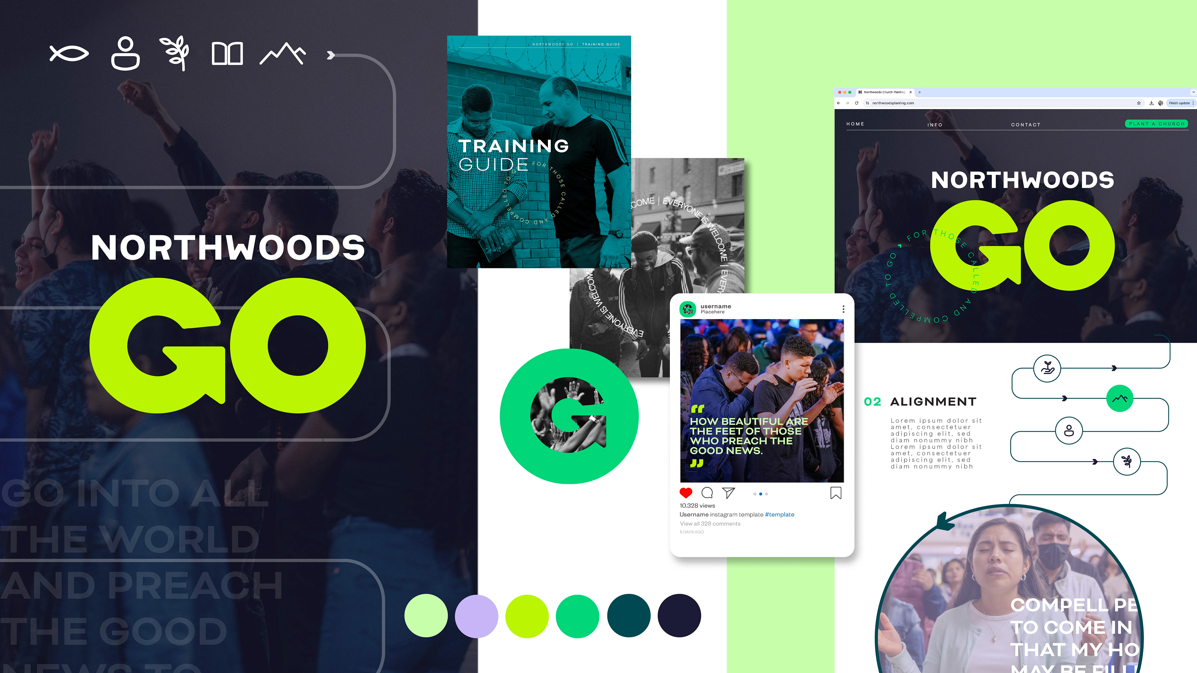 Northwoods Community Church reached out for a fresh brand identity for their newest outreach initiative, Northwoods Go—a church-planting program designed to connect church planters with the mentorship, training, and resources needed to launch new churches where they’re called to serve.